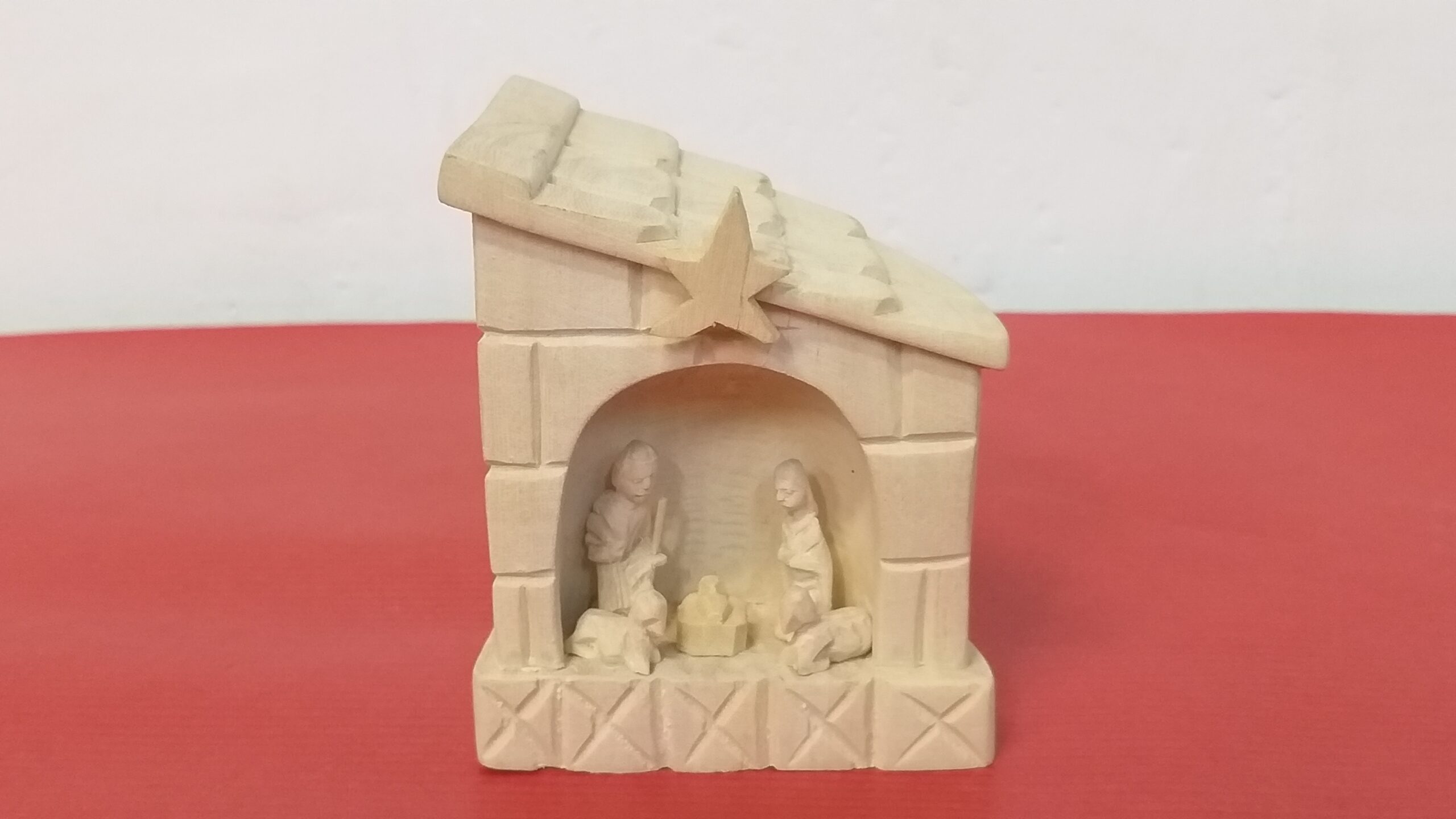 5 personnages sculptés à la main : Jésus, Marie, Joseph, Ane, Boeuf