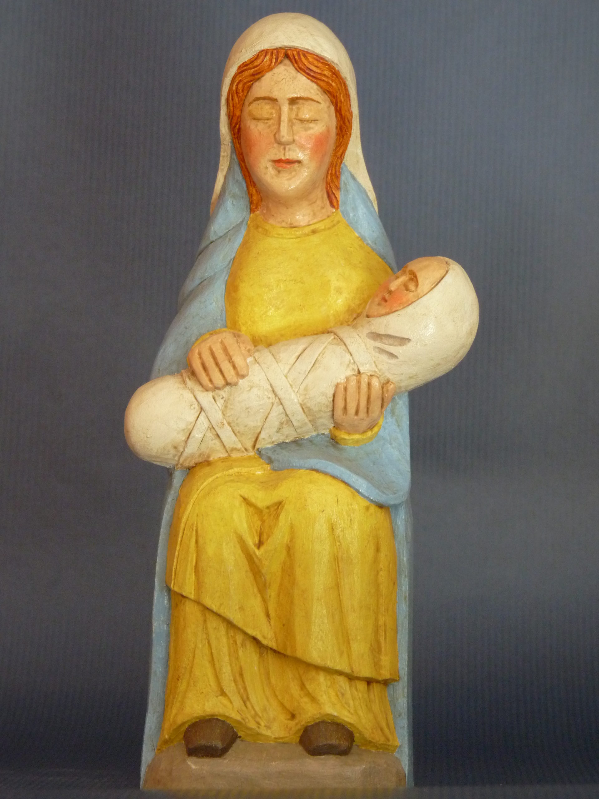 Statue de la Vierge Marie assise et portant son Fils Jésus